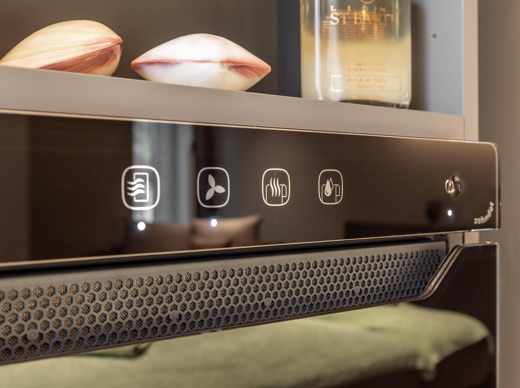 Nina Suma spiega il perché di questa scelta: «La costruzione era già in fase avanzata quando abbiamo scelto Zehnder Zenia. A differenza della maggior parte dei prodotti della concorrenza, Zehnder Zenia era disponibile anche in una variante a montaggio sopra intonaco. Anche in questa variante di installazione, lo Zenia occupa poco spazio grazie alle dimensioni molto ridotte. Un altro punto a favore, dal mio punto di vista, sono le prestazioni e la facilità d’uso del dispositivo. È facile da accendere e in un attimo, come per magia, assicura salviette calde e confortevoli, per le mani o da bagno».