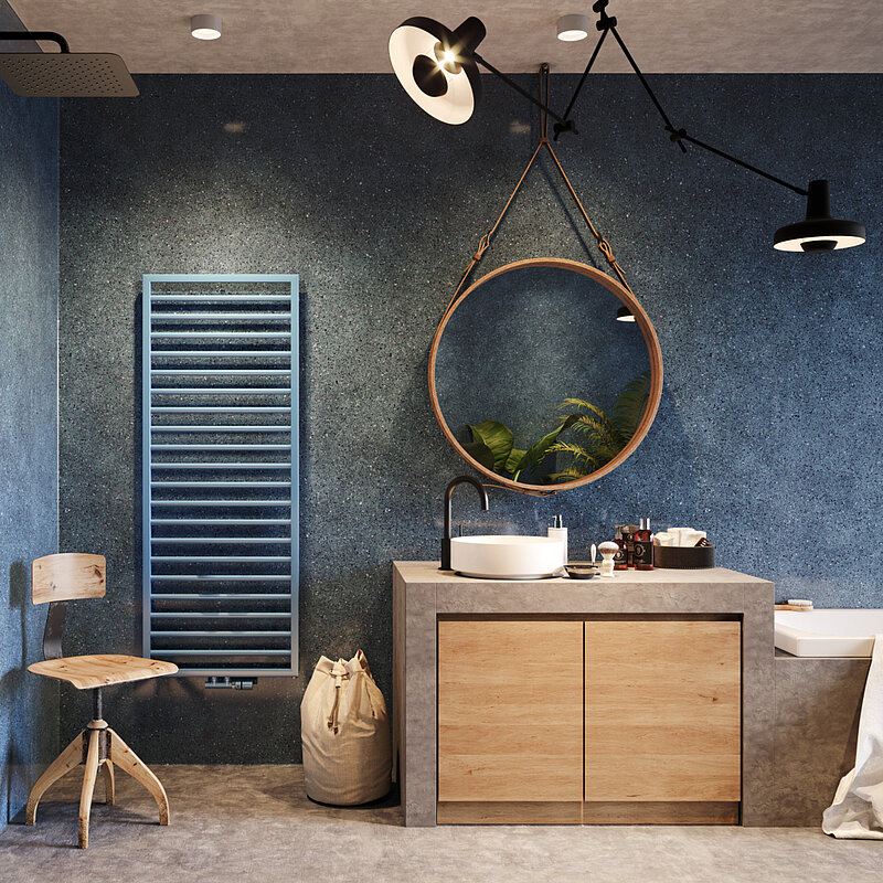 Le superfici ruvide e naturali fanno da elegante contrasto ai design più raffinati. Trame che richiamano il cemento grezzo, mescolate a superfici in pietra levigata creano un’esperienza multisensoriale. Sfumature di grigio scuro e nero, grafite e tortora sono la chiave per creare un’atmosfera mistica all’interno dell’abitazione. Le stanze monocrome sono accentuate dai toni del blu scuro e dal metallo satinato. La palette di colori tenui è realizzata per definire un ambiente tranquillo dove ritirarsi per i rituali personali e il proprio benessere.