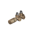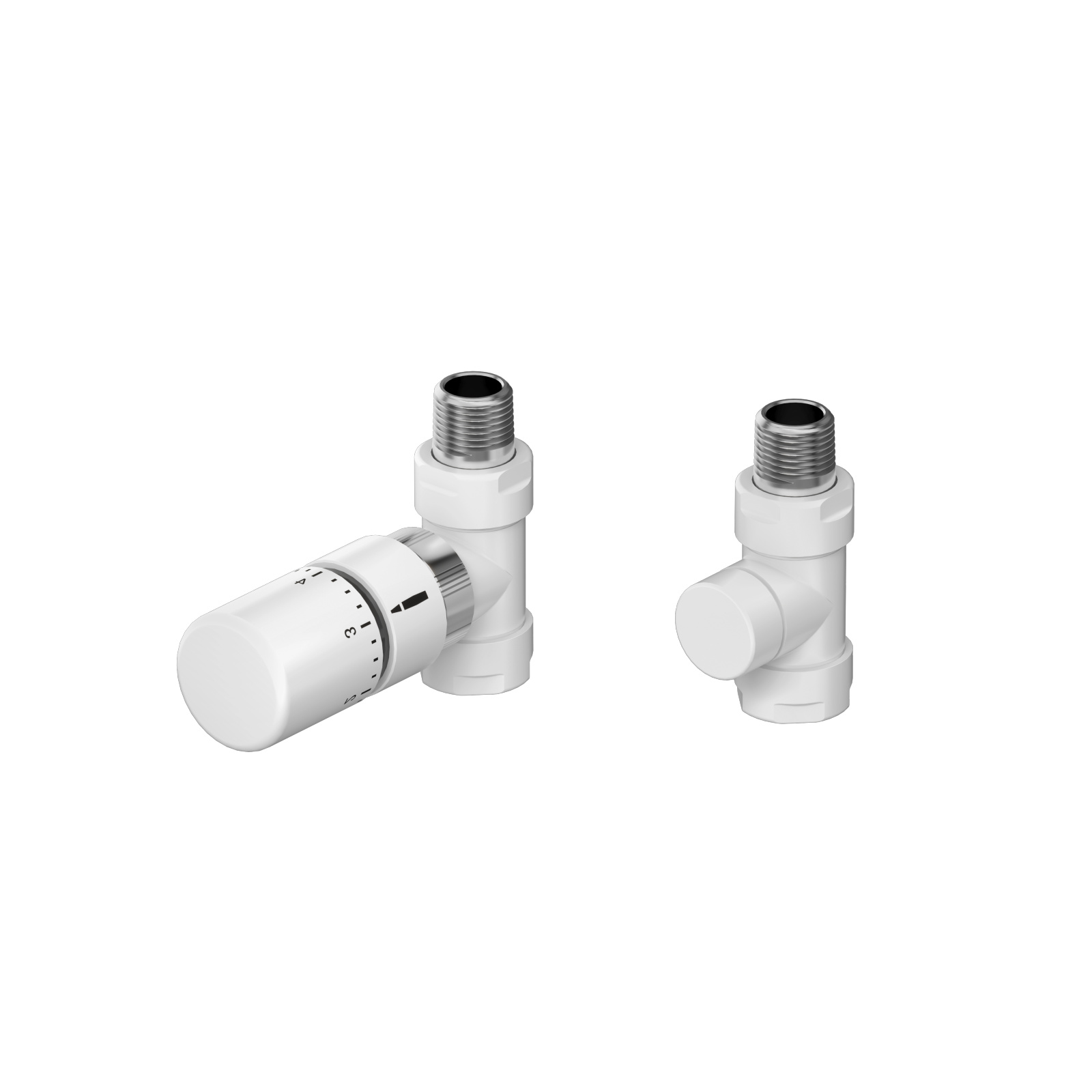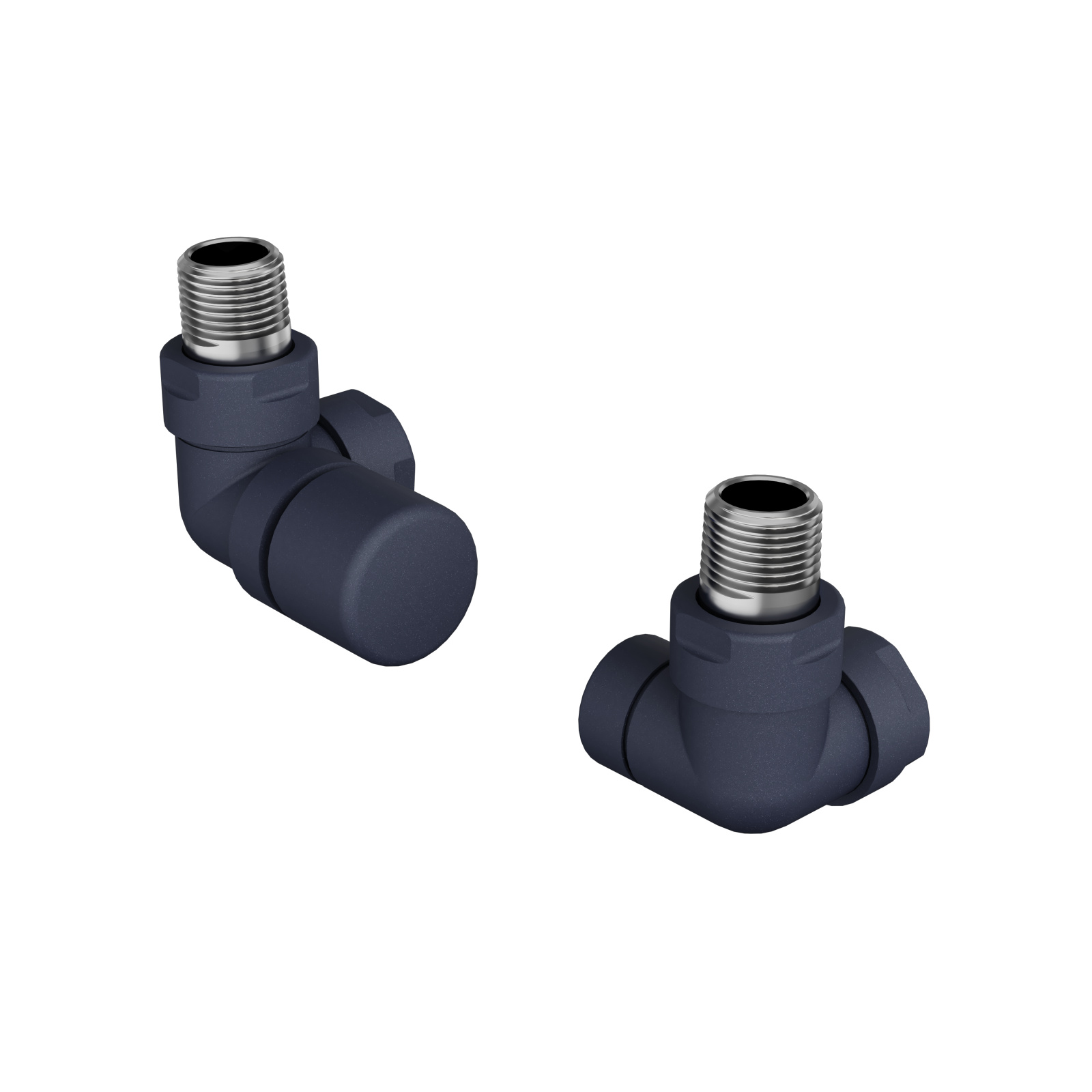 Sono disponibili diversi set di valvole con corpo valvola e raccordo di ritorno a vite, compresi i 2 raccordi da 1/2 pollici per il radiatore e i dadi di raccordo sul lato di uscita nella stessa finitura del corpo valvola.