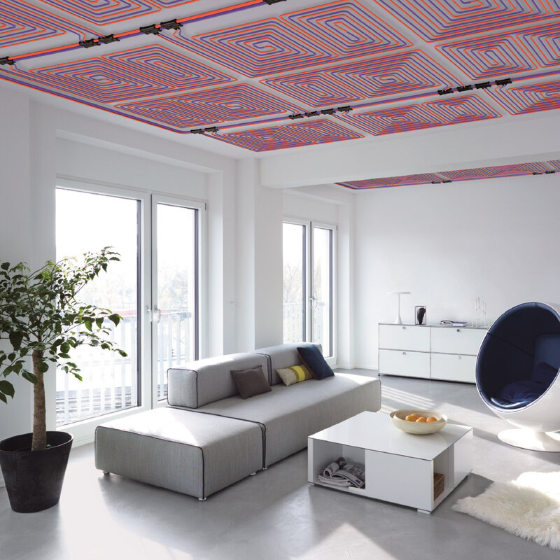 Sistema di riscaldamento e raffrescamento radiante a soffitto, dalla posa semplice e rapida analoga a un normale soffitto in cartongesso. Ideale sia per nuove costruzioni che per ristrutturazioni, in ambienti residenziali e non, consente il massimo comfort e risparmio energetico grazie alla ridottissima inerzia termica, l’assenza totale di correnti d’aria e l’uniformità di temperatura radiante.