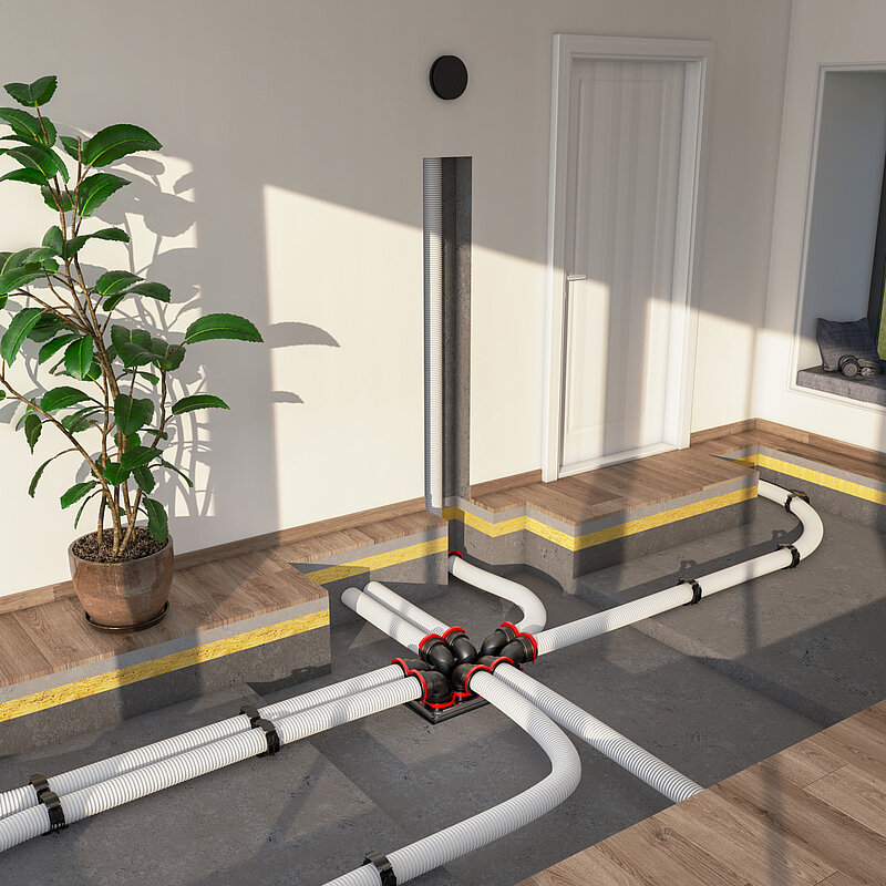 Il sistema Zehnder consente un flusso d'aria continuo, grazie ai raccordi ComfoFit e ai silenziatori ComfoWell.